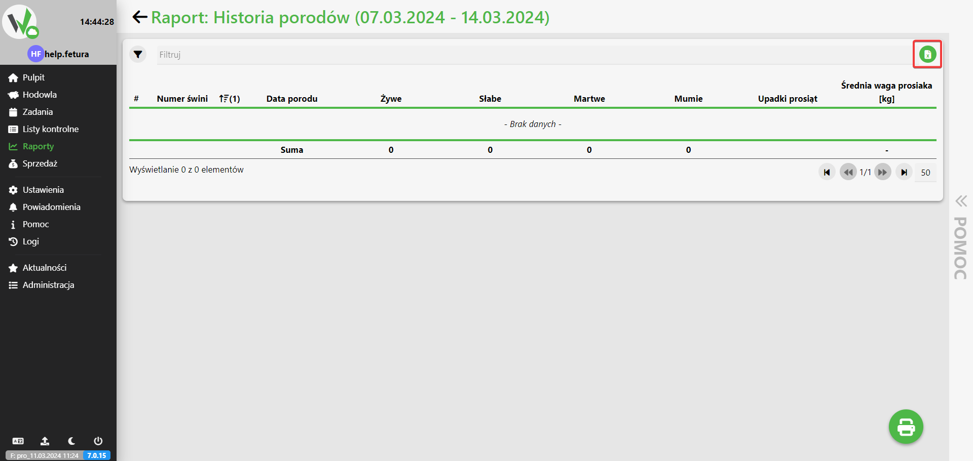 The user can create one of the detailed reports available in the Fetura Cloud application. Depending on the type – the reports present data for a given day or period and are an invaluable aid for detailed analysis of breeding performance, costs and stock status