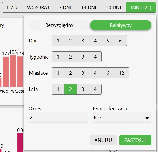 Jak ustawić zakres dat analizy?Aby zmienić zakres dat analizy po wejściu w interesujący nas raport w prawym górnym rogu możemy ustawić zakres danych. Może to być ilość dni, tygodni, miesięcy lub własna definicja przedziału czasu. Updated on 2026-03-27 Was this article helpful? Yes No About The Author Jakub Jasiński Jakub Jasiński has not written a bio yet41Related Articles Jak stworzyć nową analizę ? Jak wygenerować raport dziennego zużycia paszy silosa? Raport genetyki Przygotowanie danych do raportu genetyki Jak wygenerować raport?Potrzebujesz pomocy?Can't find the answer you're looking for?Contact Support