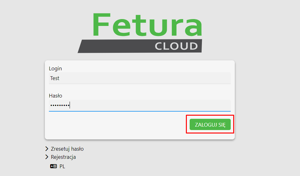 Aby zalogować się do systemu FeturaCloud, wykonaj następujące kroki:
